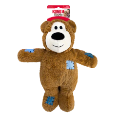Un osote tierno por fuera y resistente por dentro 💪. Este peluche de la línea KONG Knots es ideal para perros grandes: tiene una cuerda trenzada en todo el cuerpo y nudos internos que incentivan la mordida, sin guata en su interior para evitar desastres.